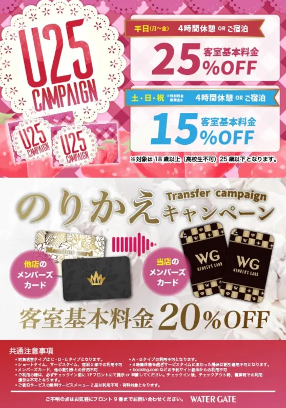 25歳以下はお得にご利用いただけます!他店のメンバーズカードの乗り換えで客室基本料金20%OFF